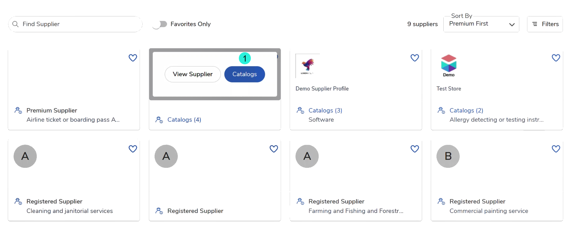 Favorites Only Toggle: If enabled, users can filter the view to see only those suppliers they have marked as a favorite.
