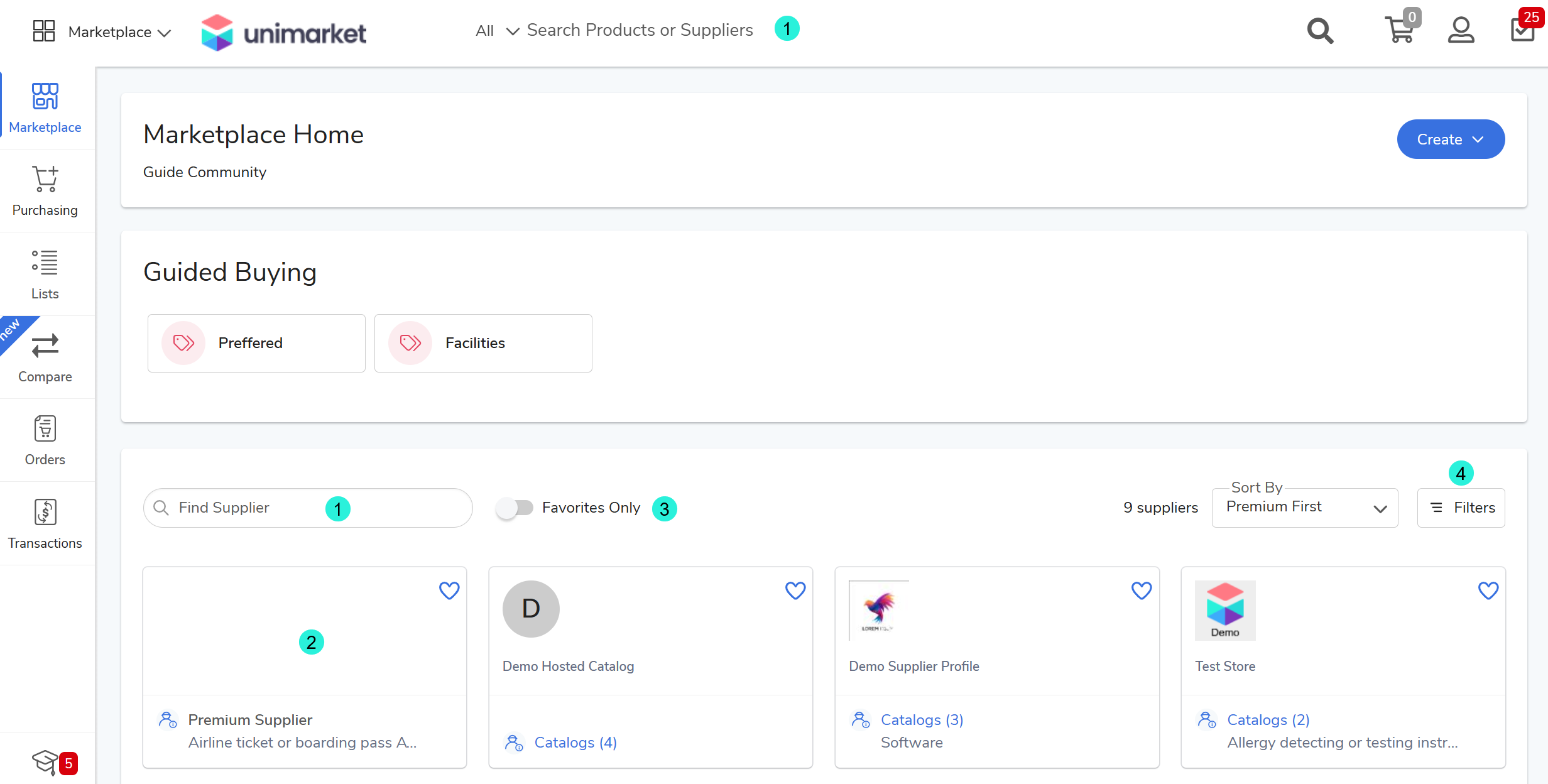 Function: A shopping feature that categorizes suppliers to foster compliant spending.