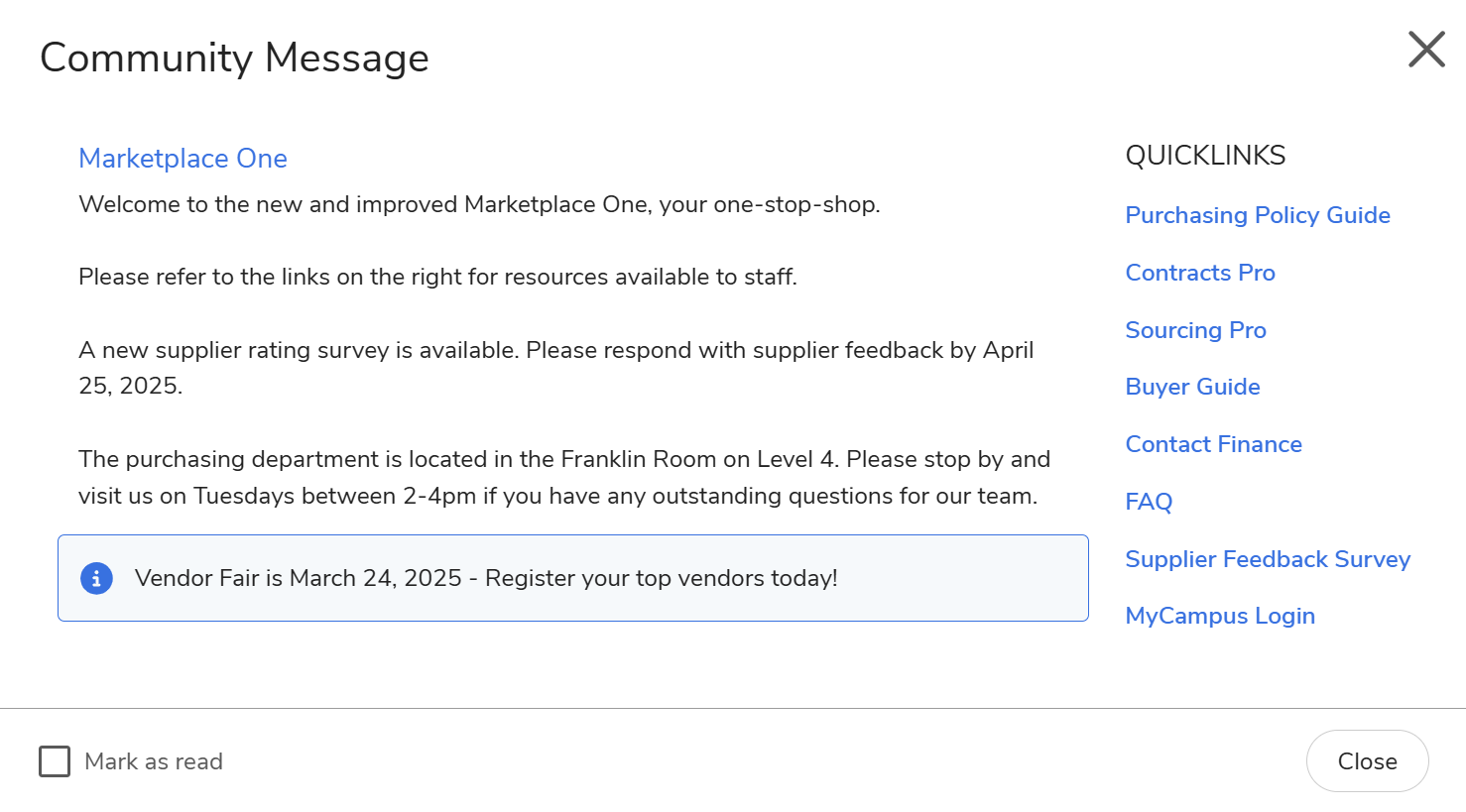 Users can dismiss it by selecting "Mark as read."