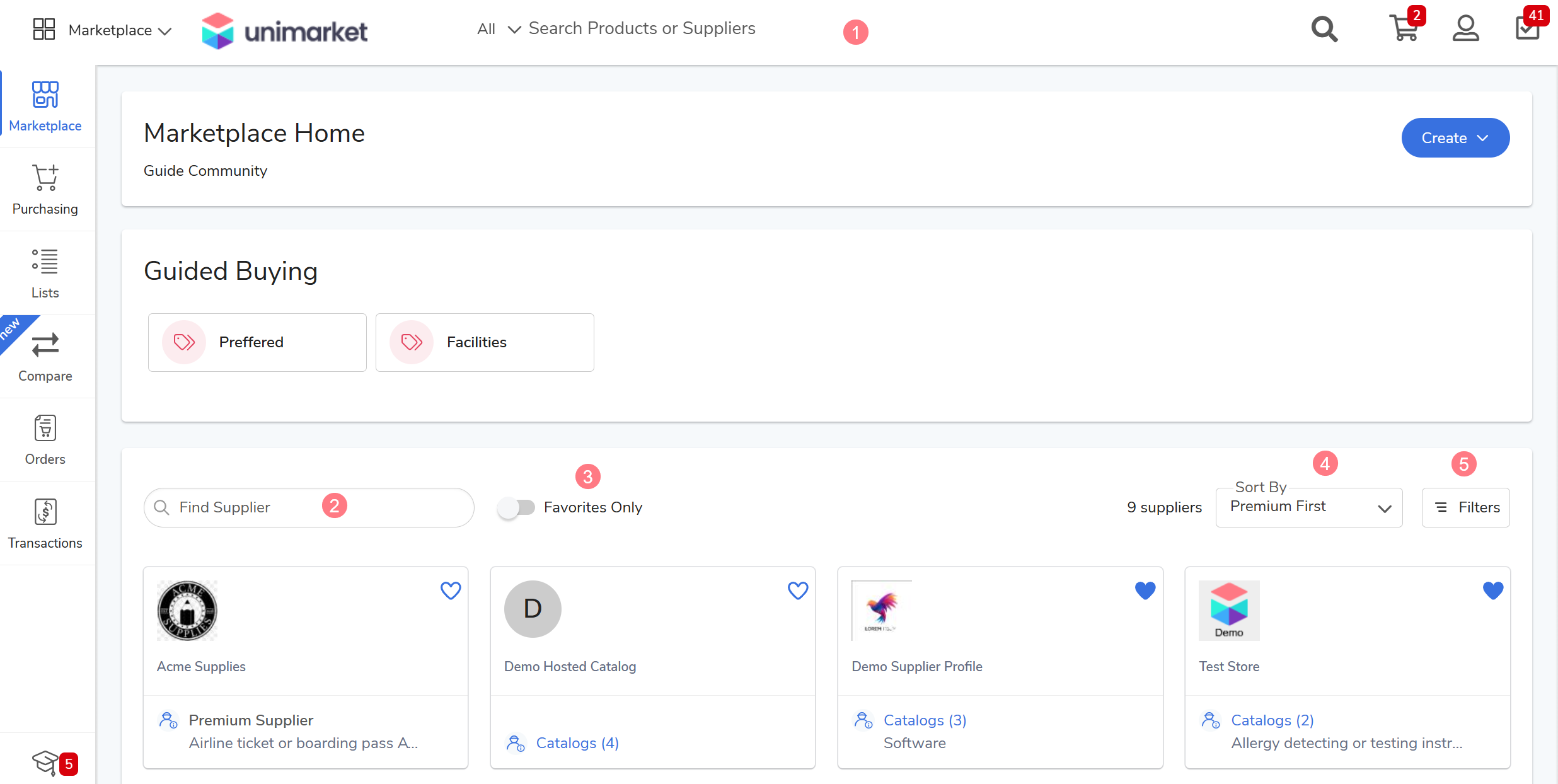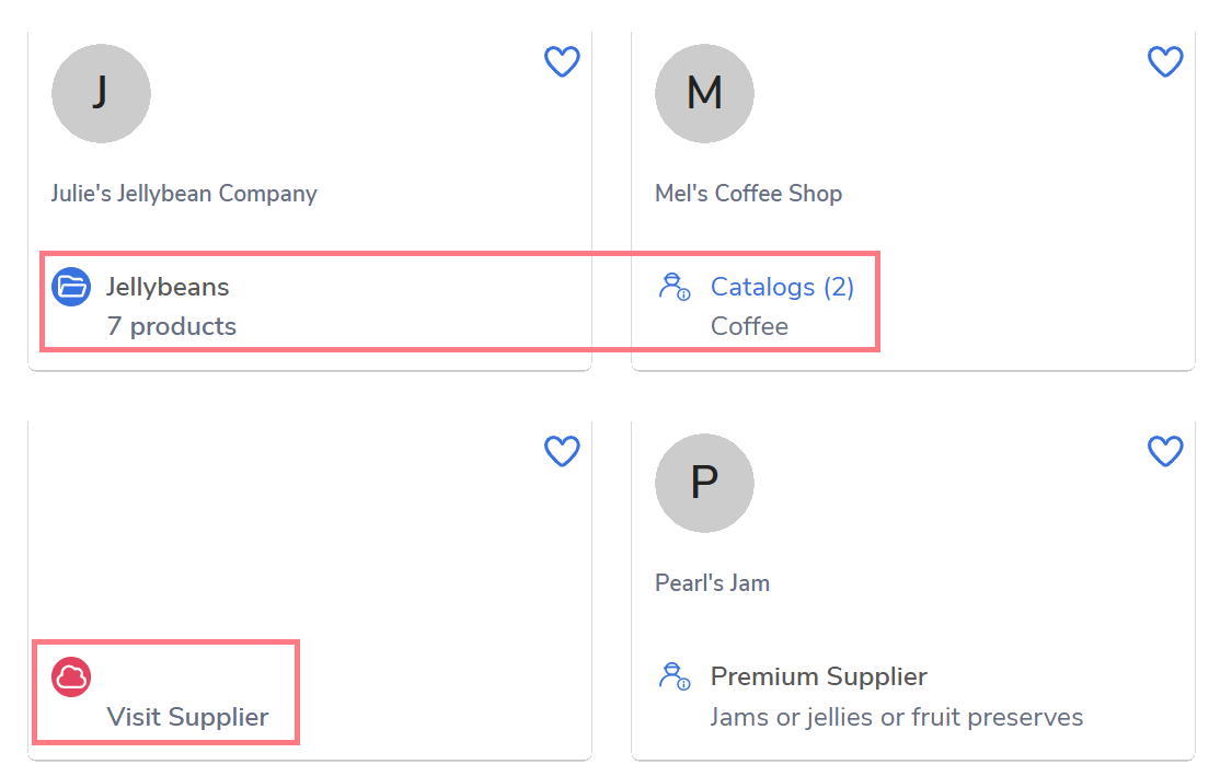 | Sort By | Ordering | By default, the supplier view is sorted by Premium First catalog suppliers. The menu also allows users to browse all suppliers alphabetically. |