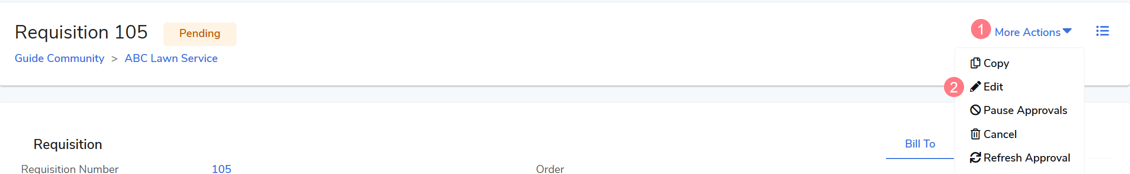 On the requisition view screen, select More Actions > click Edit.