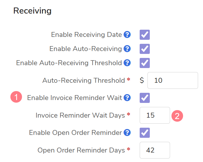 Community Administrators can set up automated reminders to prompt buyers to complete outstanding receiving tasks. This article details how to enable the Open Order Reminder and Invoice Reminder Wait settings, and how buyers can view their Outstanding Receiving tasks.