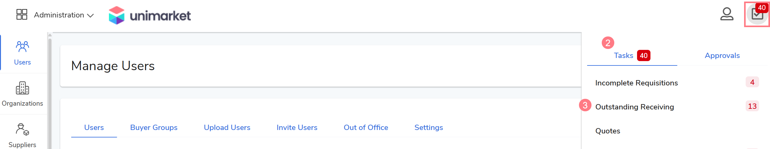 Buyers can view all current outstanding receiving tasks in their task menu.