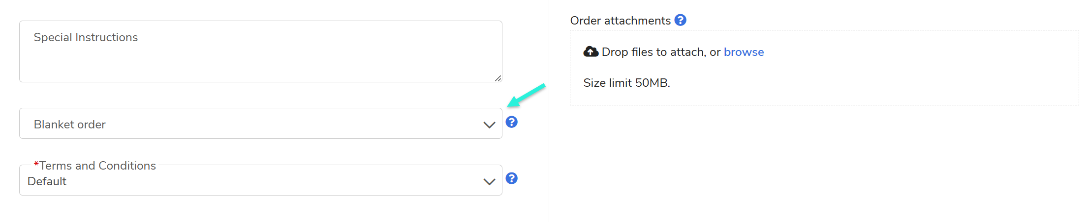Checkoutscreen, insert all applicable information, and scroll down to the Blanket Order field. Select the dropdown and choose the desired Blanket Order number.