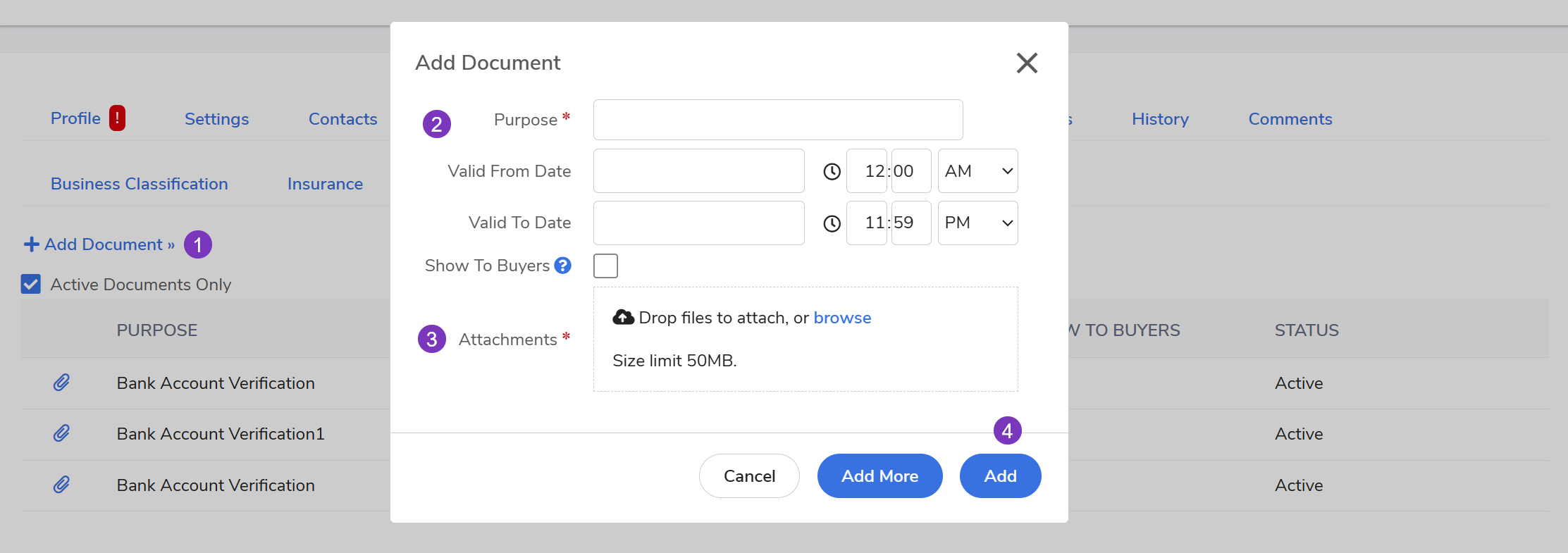 Visibility: Enable the Show to Buyers toggle if you want the document to be visible to buyers within the community.