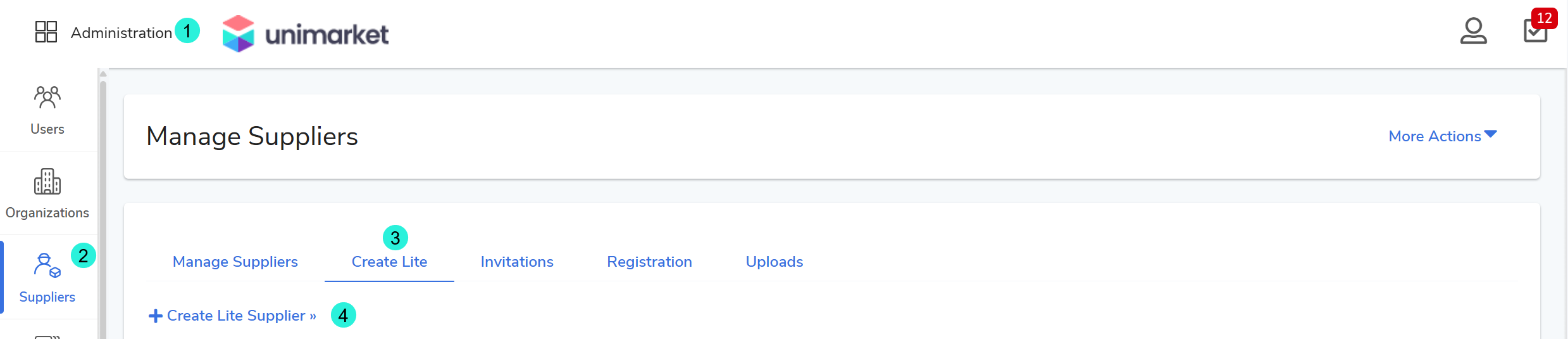Lite Suppliers are created and managed by users with the Community Administrator or Community Supplier Administrator role.