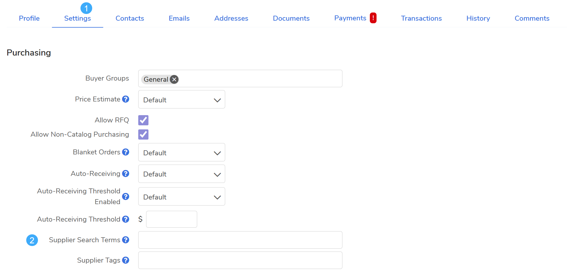 You can also define search terms during the initial setup of a Lite Supplier to ensure they are discoverable immediately.