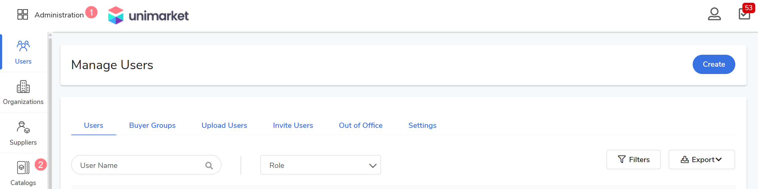 To access and manage catalogs, go to the Administration module and select Catalogs.