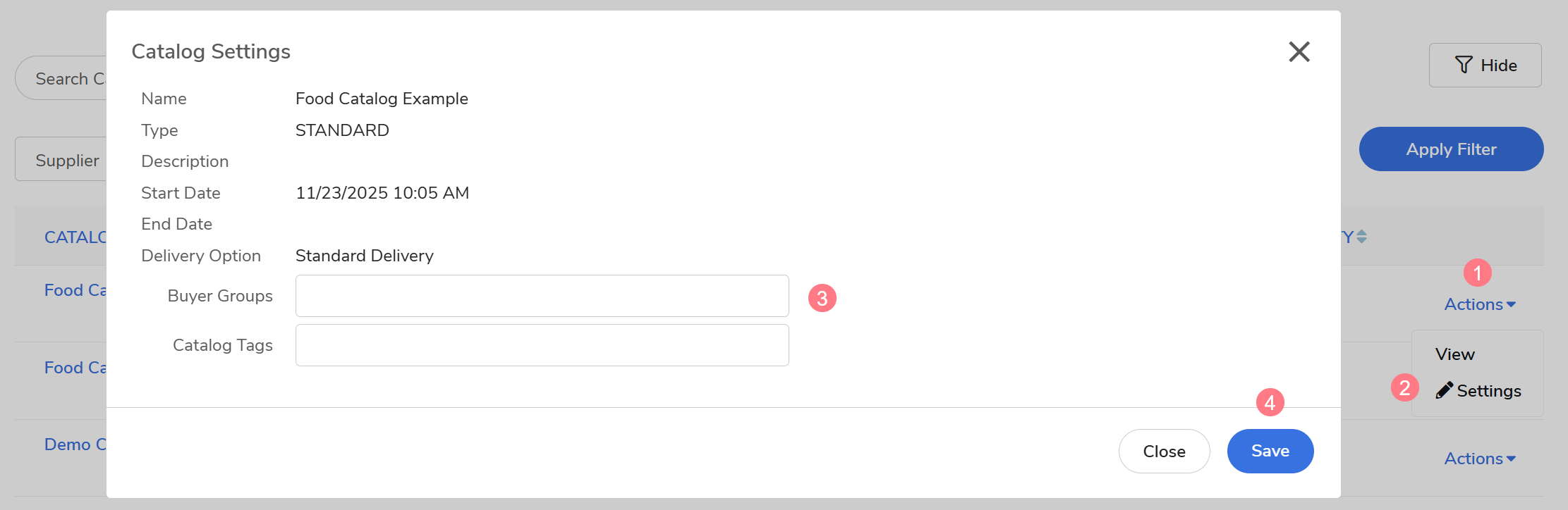 To ensure the right users can see the catalog, you must assign it to a Buyer Group.