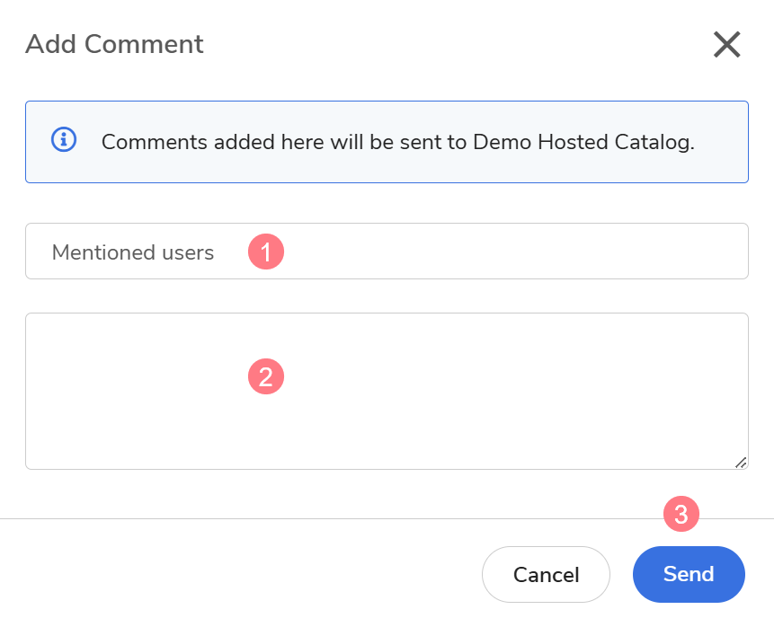You can message suppliers directly regarding their catalogs (e.g., to request price changes or clarify item details).