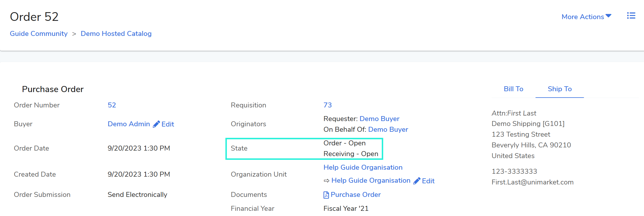 Action: Locate the Purchase Order (PO) and check its Order State.
