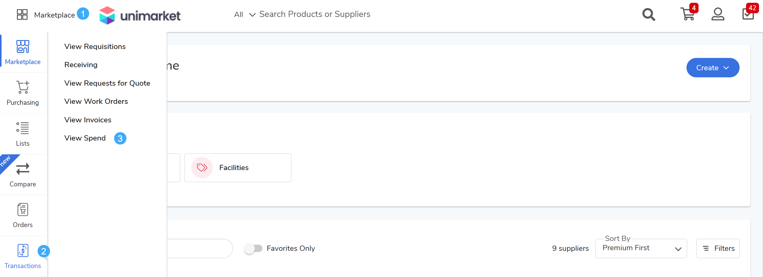 Marketplacemodule > select Transactions > click View Spend.