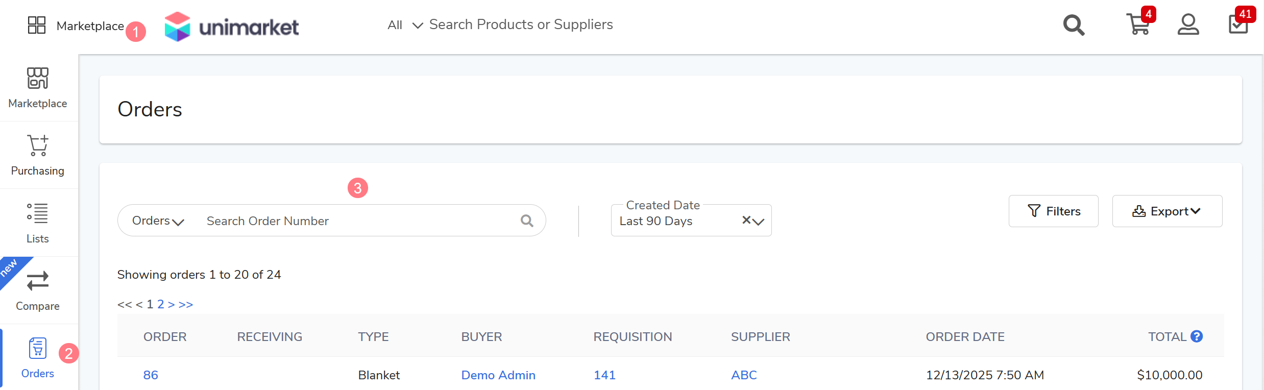 Marketplacemodule > select Orders.Locate Order: In the Search Order Number field, enter the desired order number.