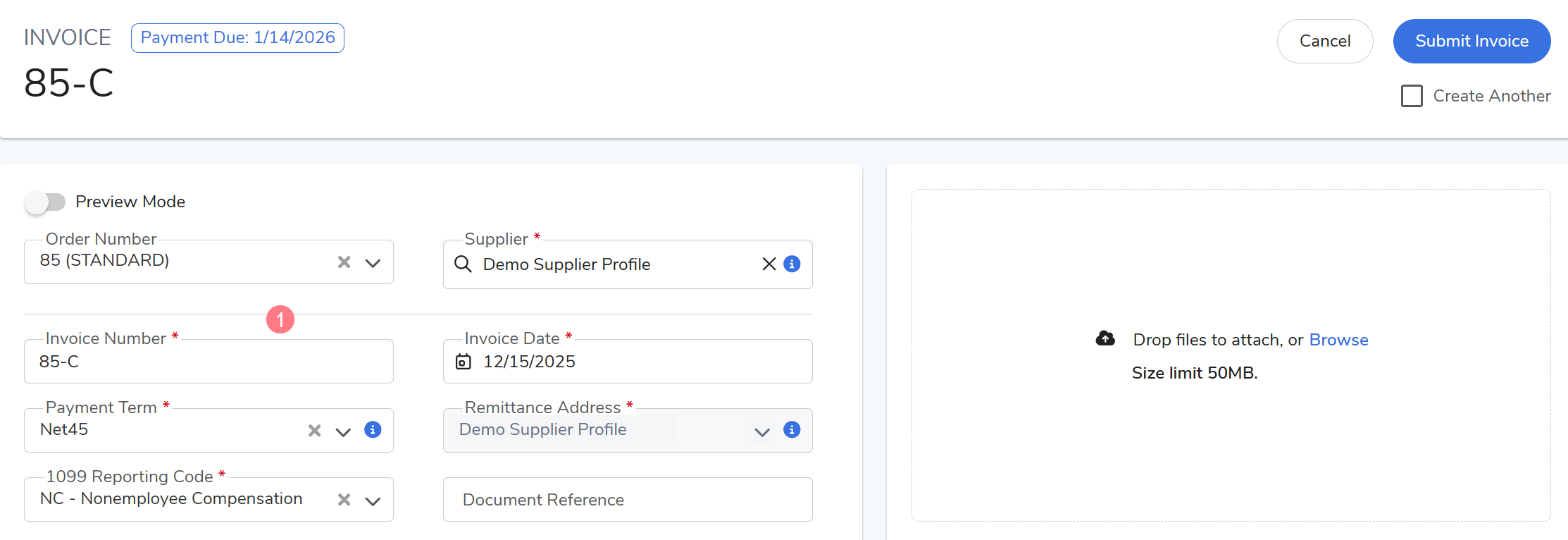 • Uniqueness: This credit invoice number must be unique to avoid an error. If you need to reference the original invoice number, it is recommended to append a "C" (e.g., OriginalNumber-C) to indicate the credit.