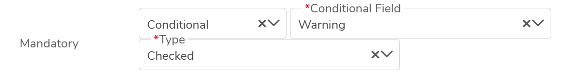 Choose the desired Type and Value (e.g., "Warning" will be visible, if the user selects Value as "Checked". If the user does not select a Value, then "Warning" will not appear).