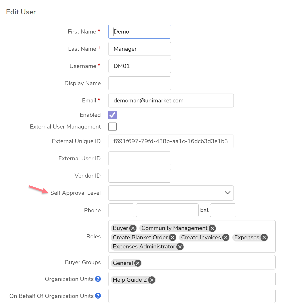 Assigning Self-Approval Levels