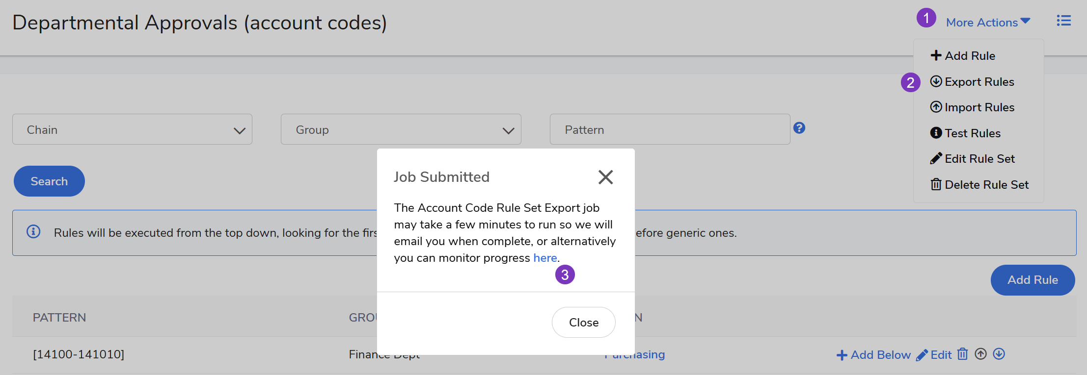 | Chain | Yes | Existing Chain Name | The name of the approval chain to route to if the account code matches this pattern. |