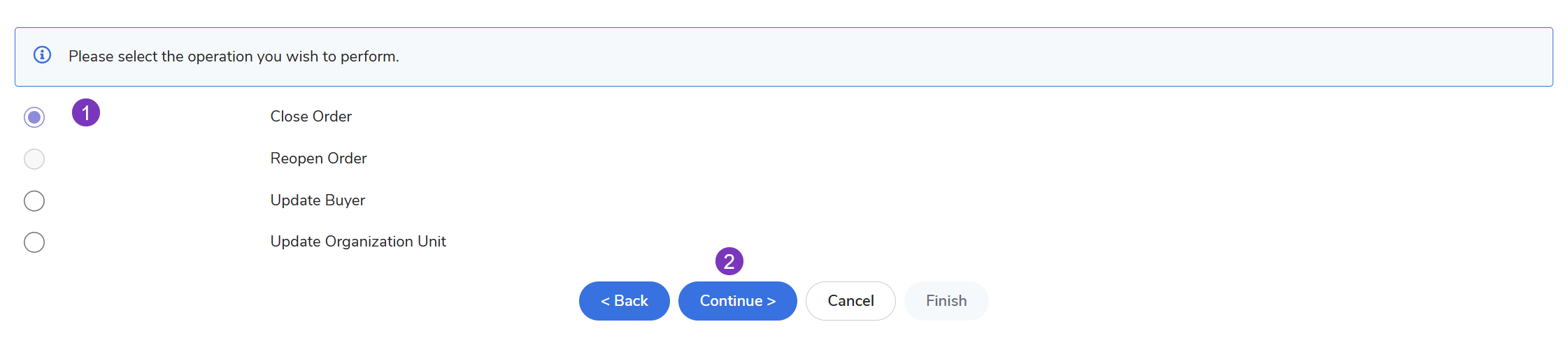 Choose Close Order > click Continue.