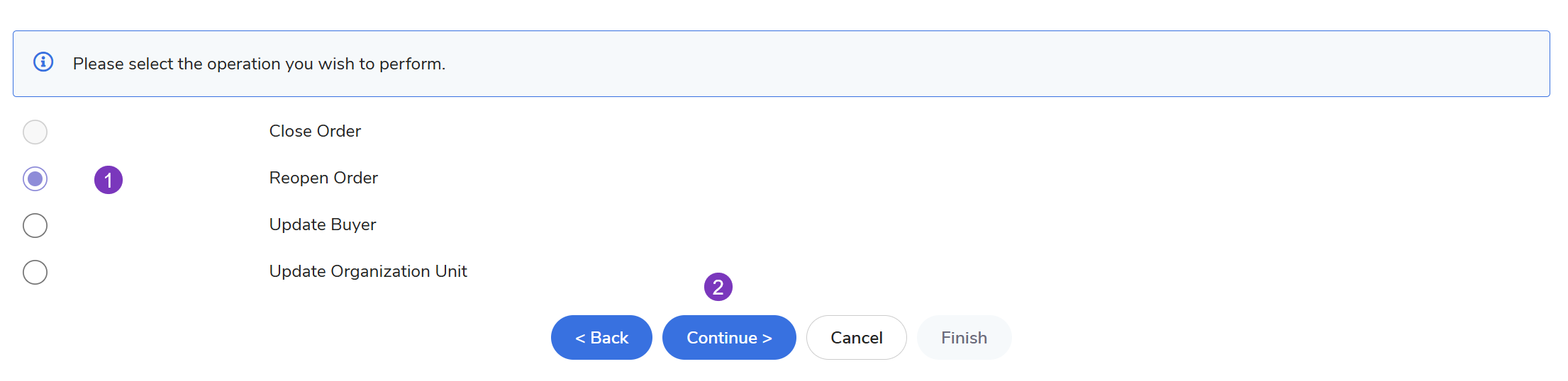 Choose Reopen Order and click Continue.