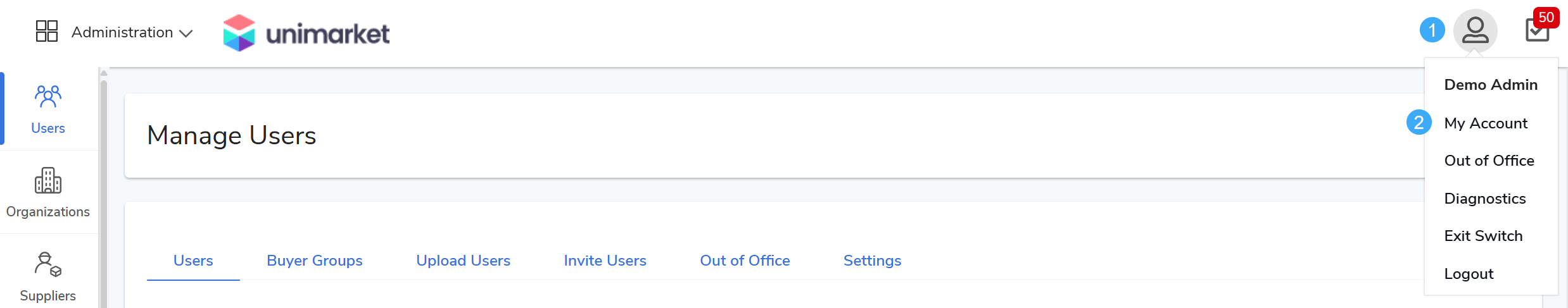 In Unimarket, all users have the ability to manage their personal profile and system preferences, through the My Account screen.