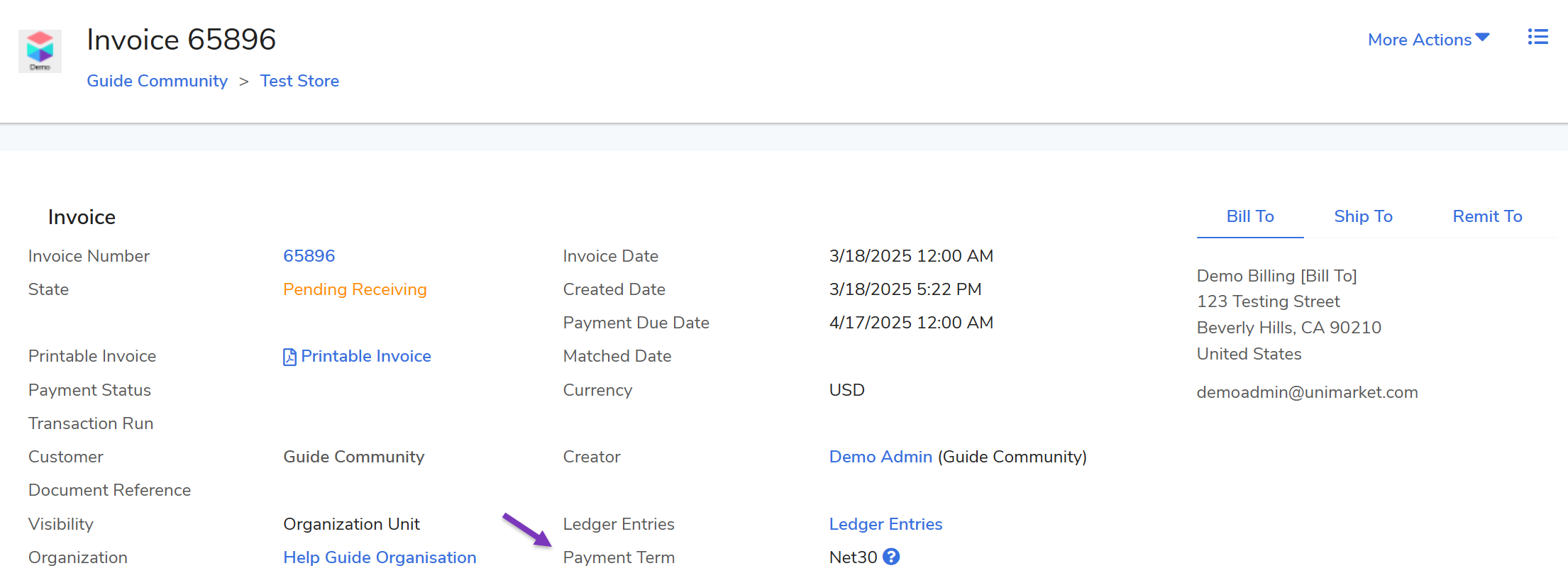 | Code | A unique identifier (e.g., '30' or 'N30'). This should match the corresponding code in your ERP system to ensure successful invoice integration. |