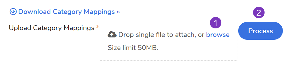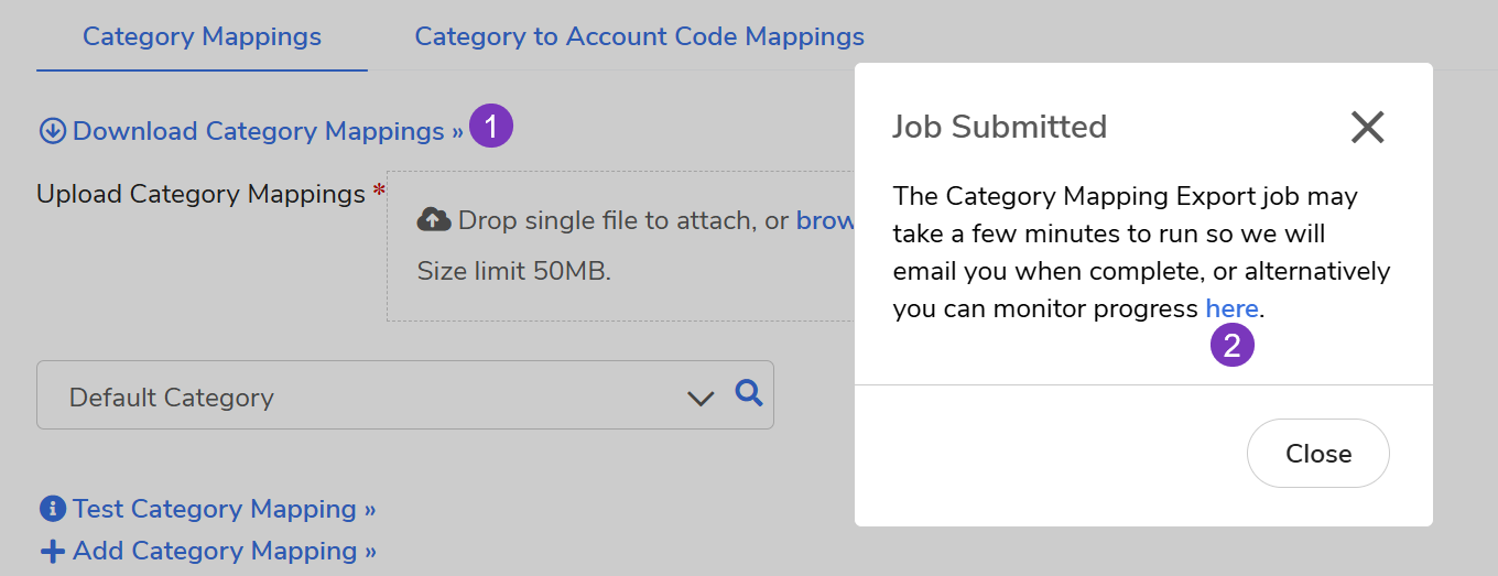 Select Download Category Mappings to get the template and click the here hyperlink.