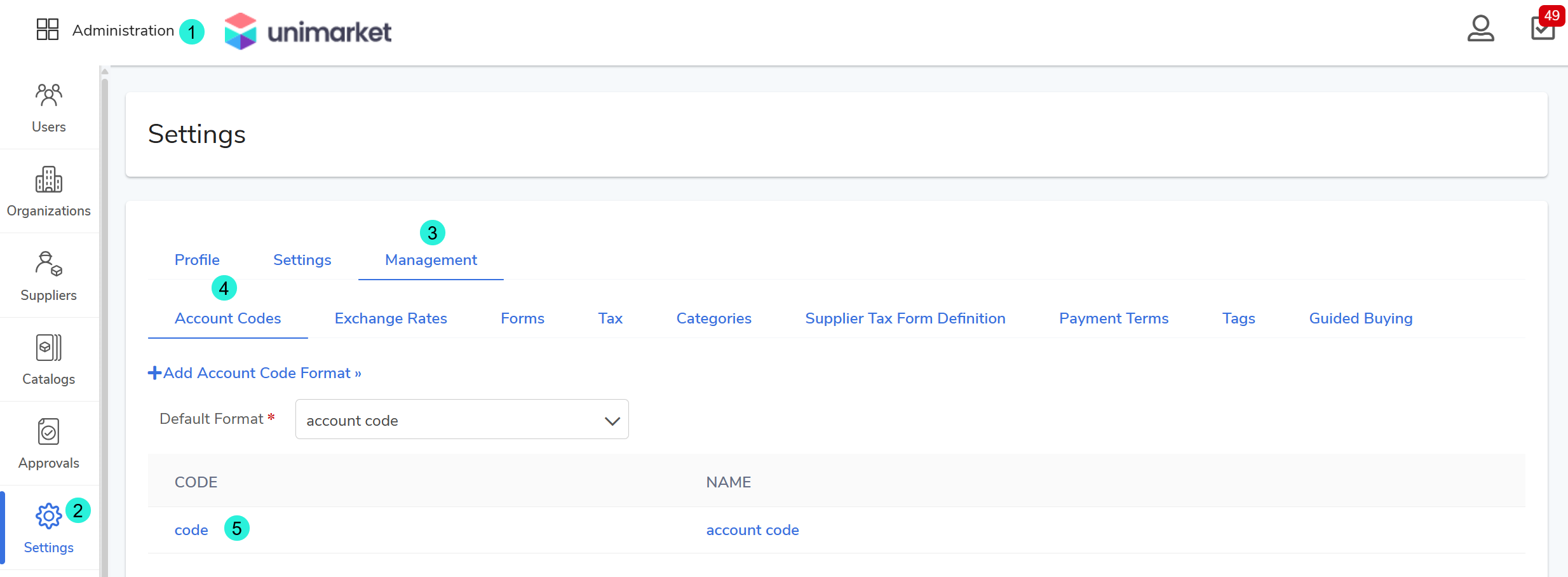 In Unimarket, Account Code Formats define how financial data (GL strings) are captured during checkout. These formats must mirror your institution's ERP system to ensure requisitions are coded correctly for your finance department.