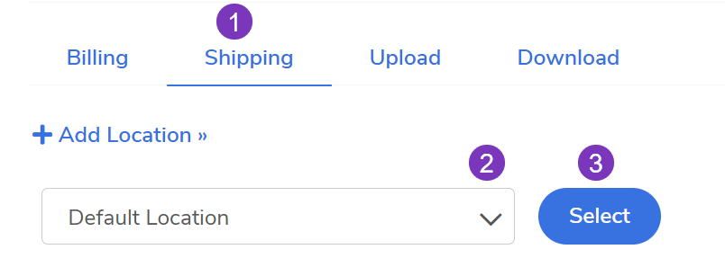 Ship To Default: On the Shipping tab, use the Default Location dropdown to select an address and click Select.