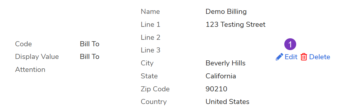To Delete: Locate the address in the Billing or Shipping tab and select Delete.