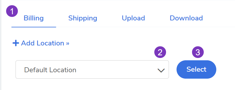 Bill To Default: On the Billing tab, use the Default Location dropdown to select an address and click Select.