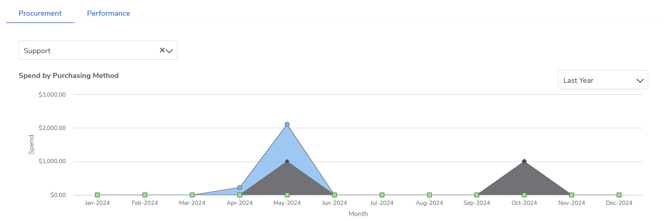 Sample of spend data for a specific Org Unit