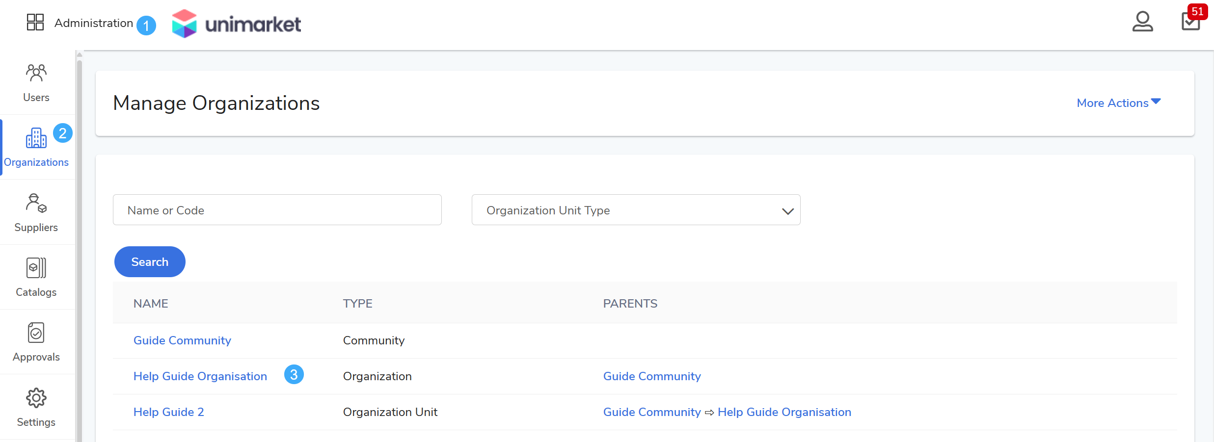 In Unimarket, View and Receiving Sharing are collaborative features that leverage your Organization Unit (Org Unit) hierarchy to provide departmental visibility and shared workload management.