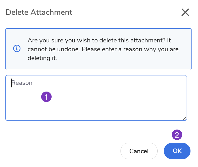 Provide Reason: A pop-up box will appear. You must enter a message in the Reason field to explain why the file is being removed.