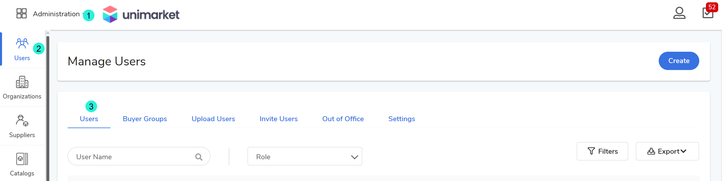 Access: Navigate to the Administration module and select Users to open the management screen.