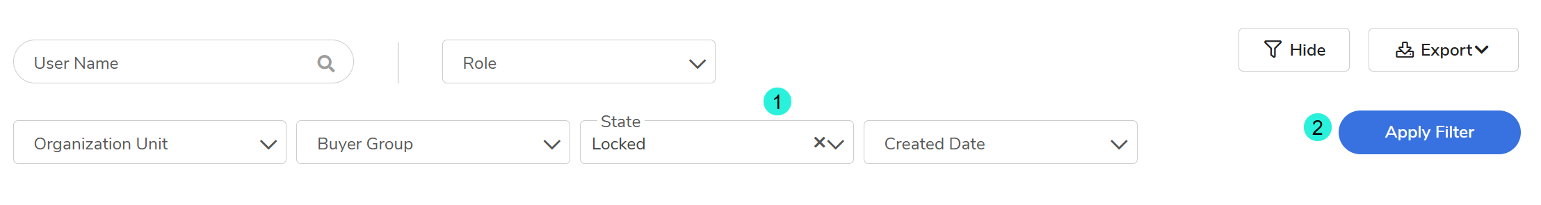 - Search for Locked: In the State field, select Locked, then click Apply Filter.