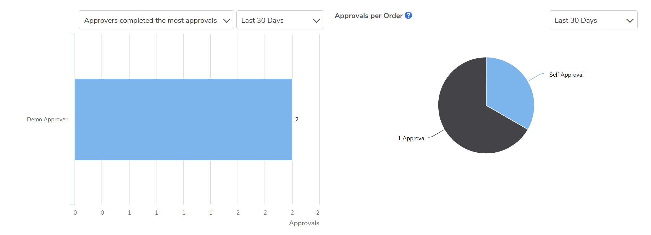 - Approvals Per Order: A pie chart showing the complexity of your workflow (how many "touches" a request needs before becoming an order).