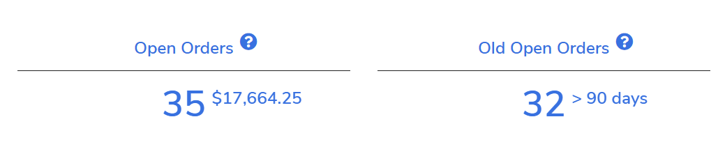 - Open Orders: Shows all active or partially received orders. Clicking this widget takes you directly to the View Orders screen with these filters pre-applied.