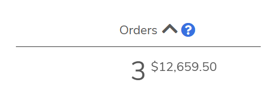 - Displays the total number and value of orders placed in the last 30 days, with trend arrows comparing this to the previous period.