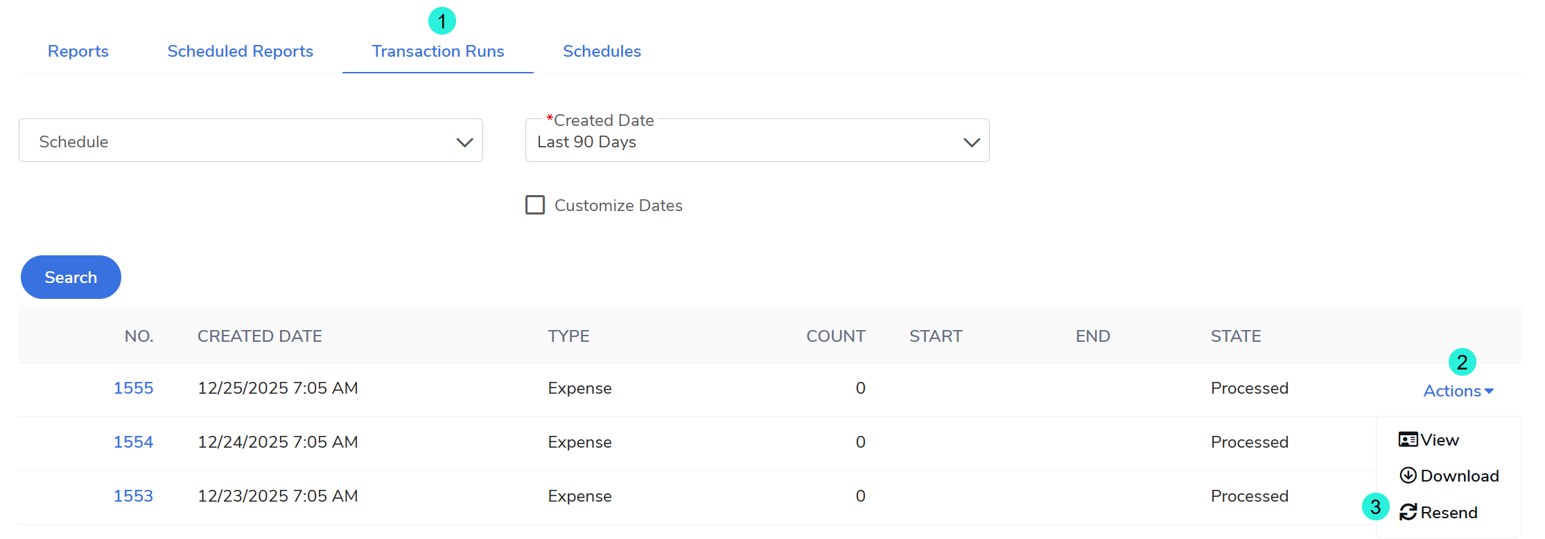 Expense Transaction Run: Collects data specifically for approved expense claims.