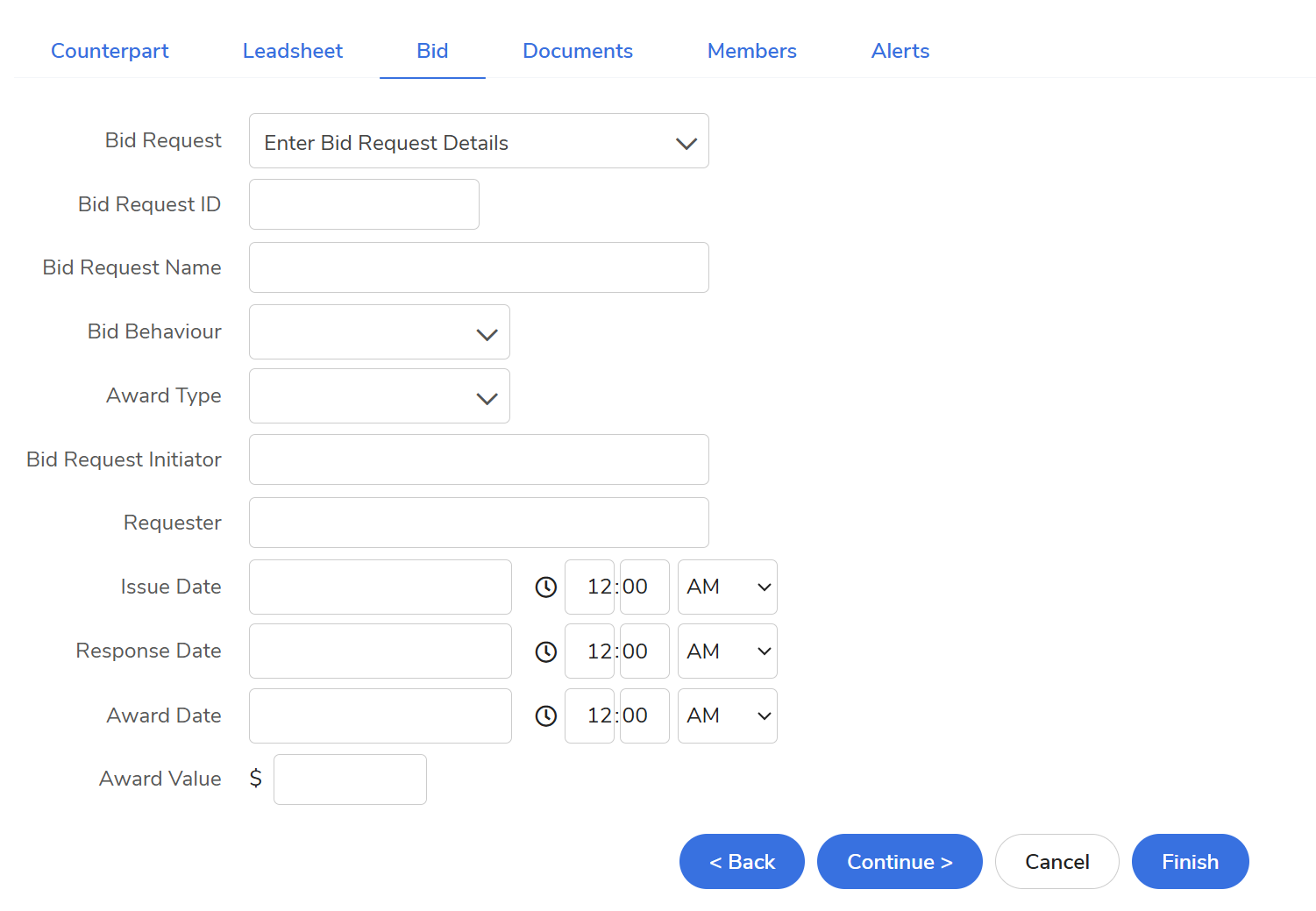 Enter Bid Request Details: Use this to manually enter details if the bid was conducted outside of the system.
