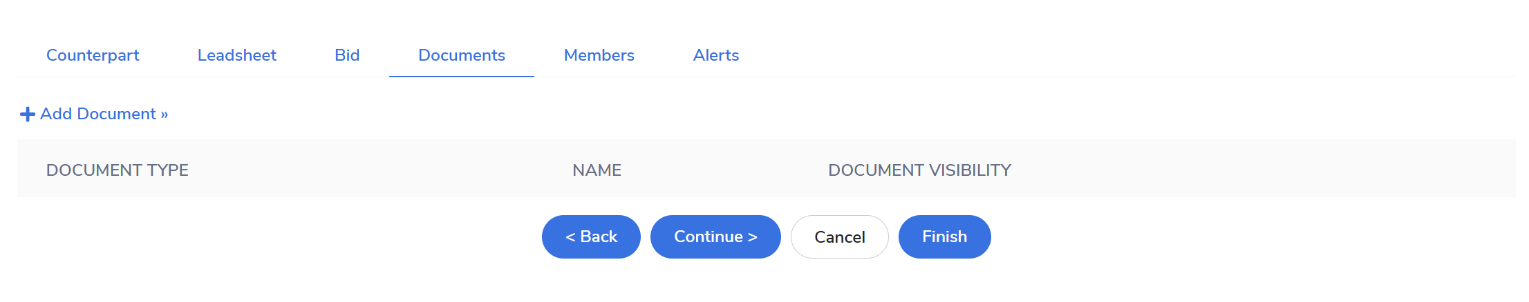 | "Contract" Type | A direct link to the file will appear on the Leadsheet (the main overview tab) for high visibility. Note: Users with the View All Contracts role and not a member of the contract. Can view links listed on the Leadsheet, by going to the Documents tab. |