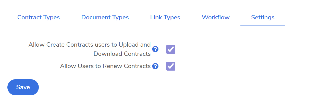 - Required Documents: Use Document Types to signal to users which files are mandatory for a specific contract type.