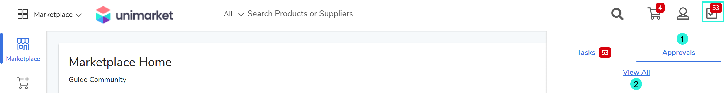- Select the Tasks menu (top right) and click the Approvals tab.