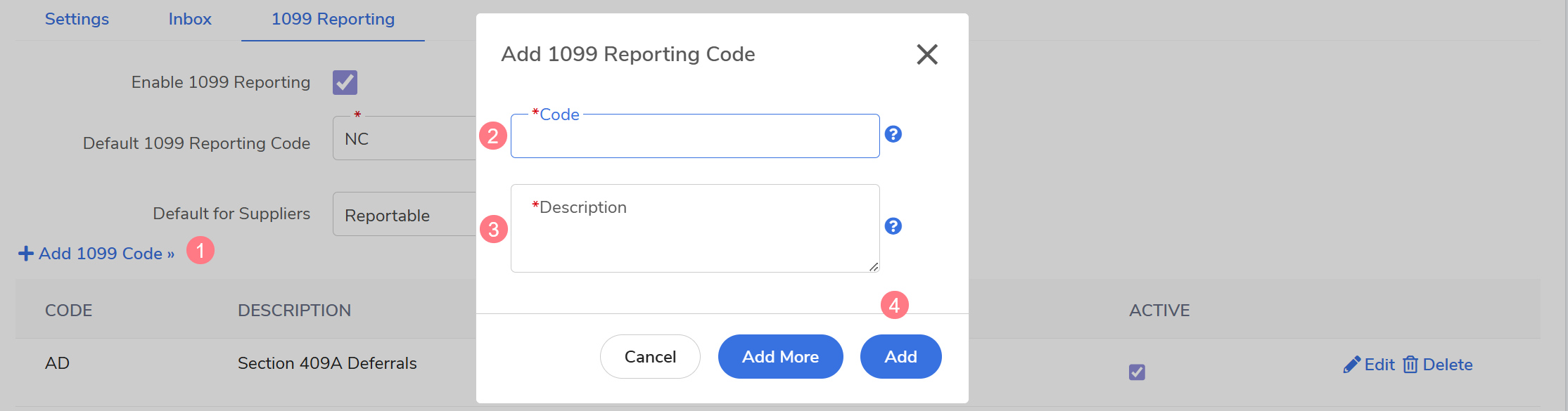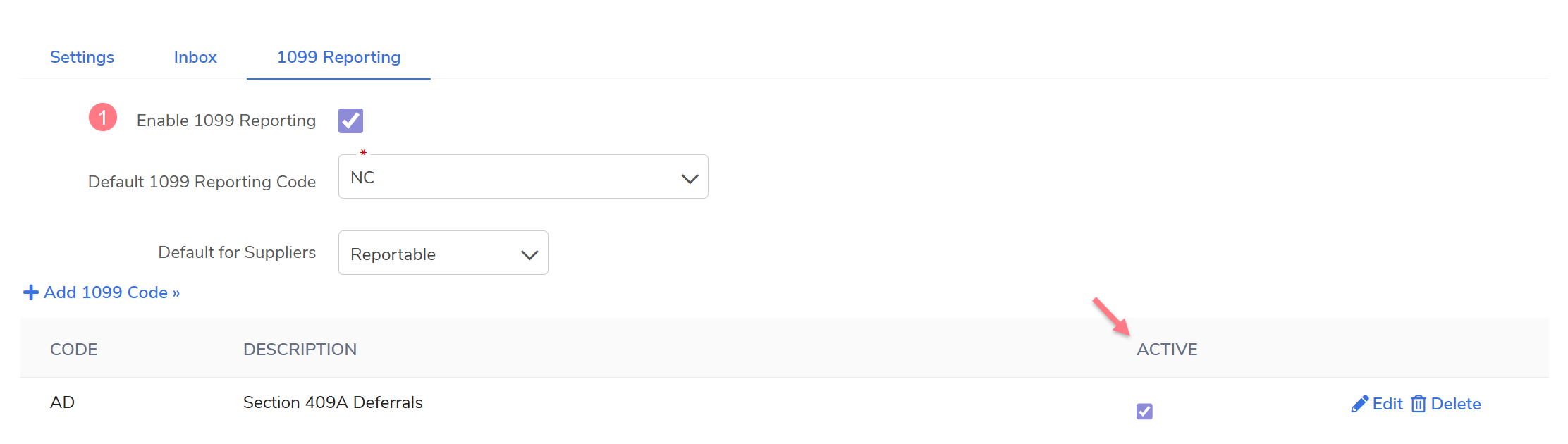 Click +Add 1099 Code.
