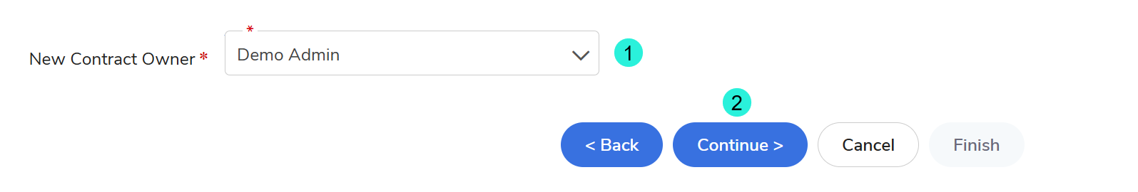 - In the New Contract Owner field, use the dropdown menu to search for and select the name of the new owner.