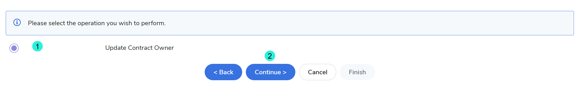 - On the next screen, ensure the option Update Contract Owner is selected.