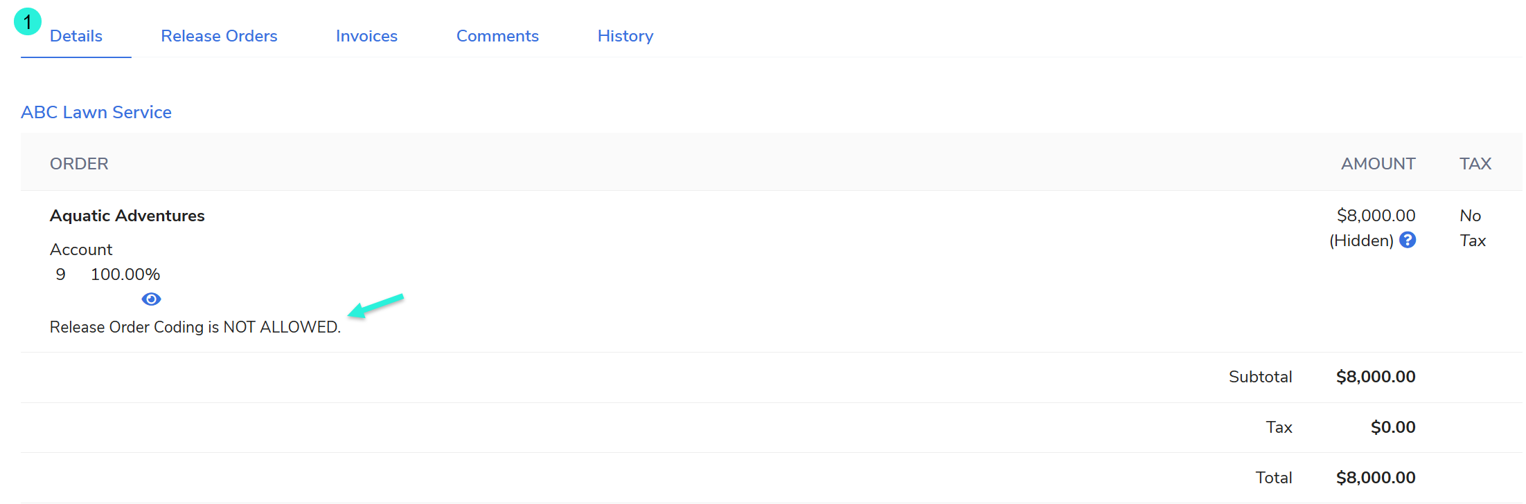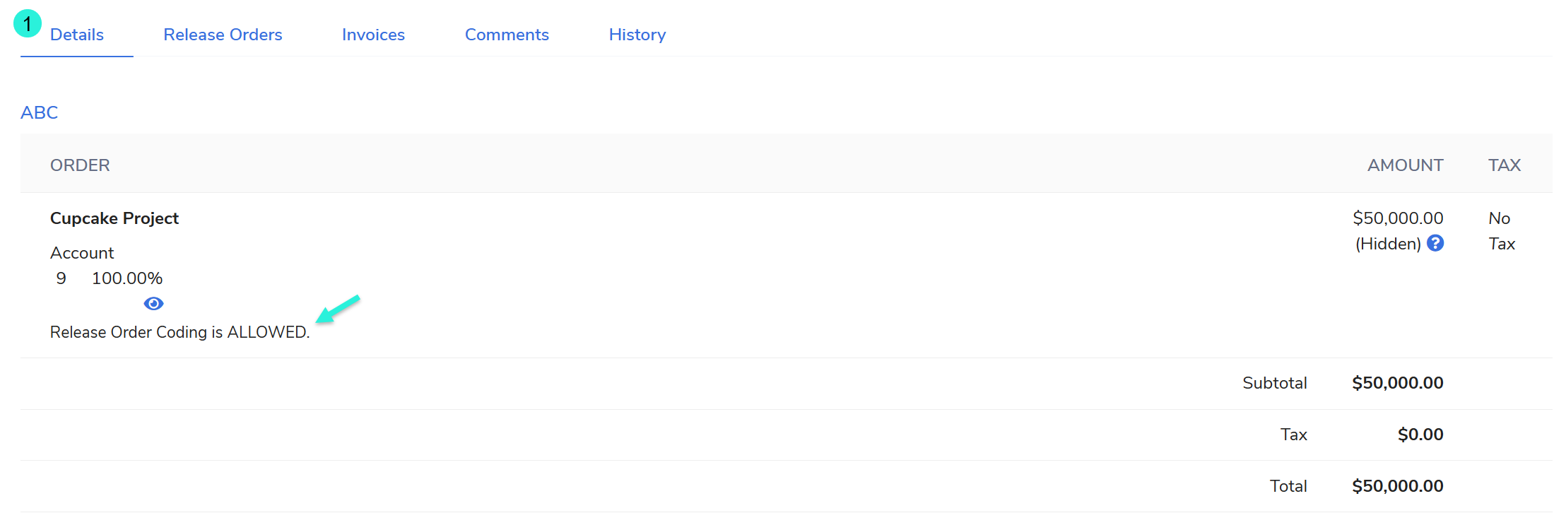 Not Allowed: If the box is not checked, the BO's Details tab will display Release Order Coding is NOT ALLOWED.