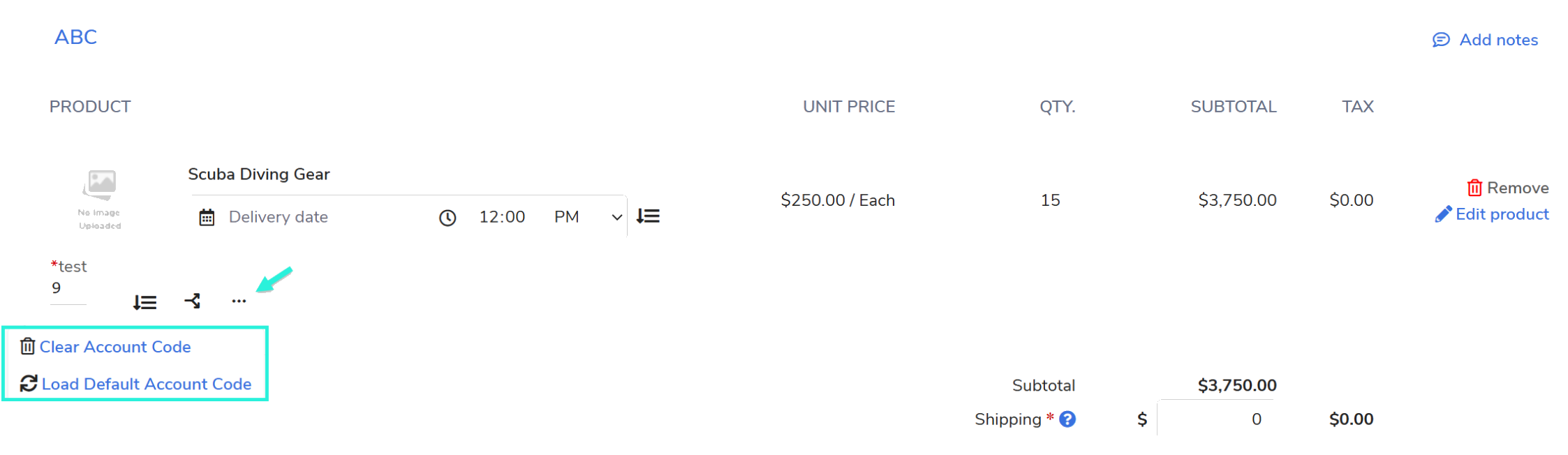 On the Checkout Screen: The user can manually key in the desired account codes