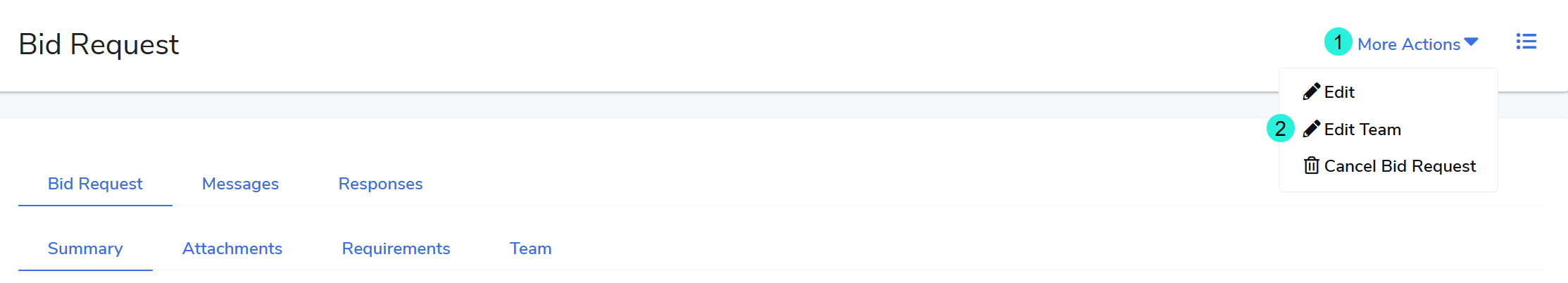 Edit Team: Locate the desired bid request > select More Actions > click Edit Team.