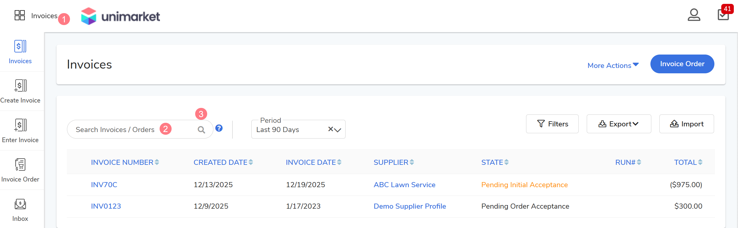 Invoicesmodule.Search: In the Search Invoices/Order field, enter the applicable invoice or order number.